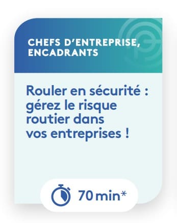 Le webinaire « Rouler en sécurité : Gérez le risque routier dans vos entreprises » vous apportera des éclairages, des conseils et des outils pratiques pour faciliter la prise en compte du risque routier dans l’évaluation des risques et pour mettre en place des solutions adaptées à votre entreprise, au quotidien et pour chacun.