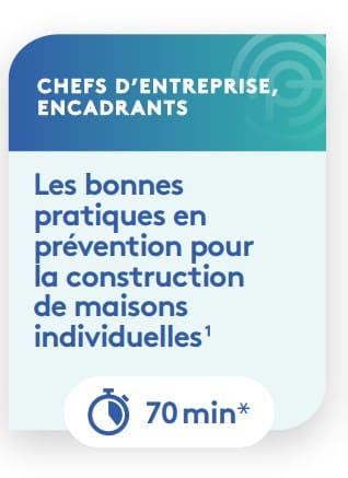 De nombreuses solutions sont à disposition pour prévenir les risques sur les chantiers de construction de maisons individuelles. Ce webinaire construit avec l’aide de Pole Habitat FFB, à destination des constructeurs de maisons individuelles et des entreprises de travaux, mettra en avant les bonnes pratiques en prévention sur ces chantiers et tous les bénéfices à tirer d’une démarche de prévention menée le plus en amont du chantier.