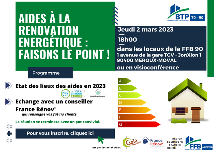 Les dispositifs et aides à la rénovation énergétique évoluent constamment. La FFB BFC vous accompagne et vous propose des réunions d'informations et d'échanges dans tous les départements de Bourgogne-Franche-Comté.