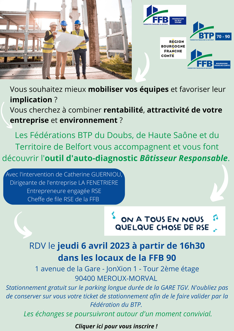 Et les Fédérations BTP du Doubs, de Haute Saône et du Territoire de Belfort vont vous le prouver le jeudi 6 avril 2023, à l'occasion d'une réunion thématique, faisant la part belle aux échanges.