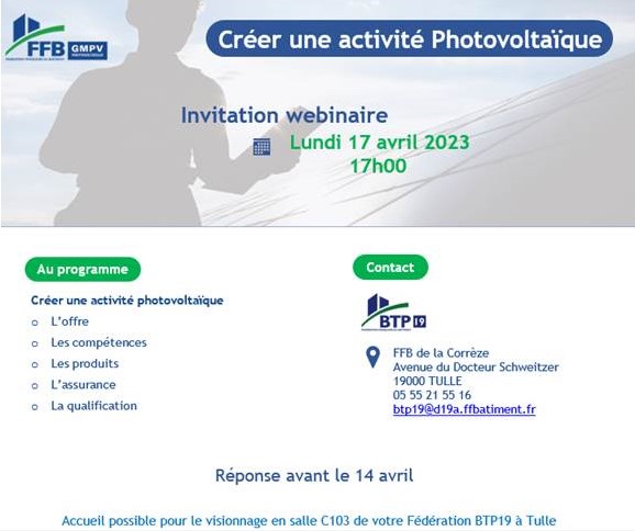 Vous souhaitez ou vous venez de créer une activité Photovoltaïque ? SAVE THE DATE : 17 AVRIL