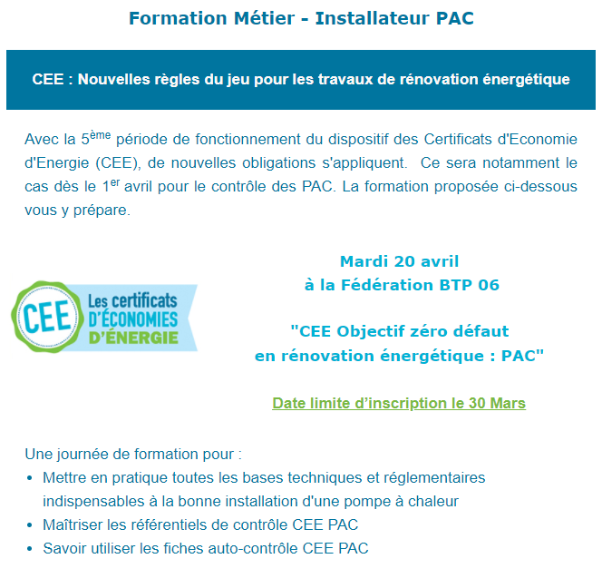 Formation Métier - CEE Installateur PAC