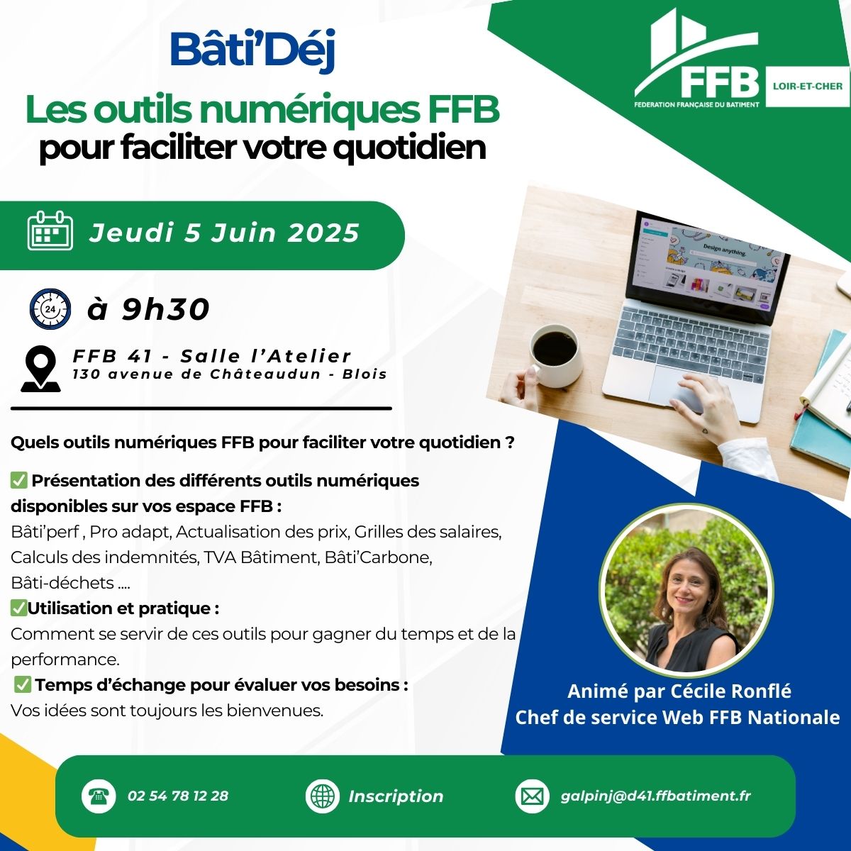 Bâti'Déj animé par Cécile Ronflé - Chef de service Web à la FFB Nationale. Venez découvrir les outils numériques mis à votre disposition pour faciliter votre quotidien.