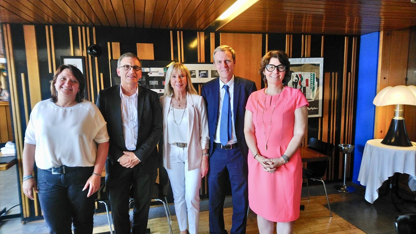 Isabelle Lonchampt, Présidente du SMTP, Philippe Deveau, Président de la Fédération du BTP13, Jean-Luc Aubert, Secrétaire Général de la Fédération du BTP13 et Florence Magnan, Directeur de la Fédération du BTP13 ont pu échanger avec Arlette Fructus, adjointe au maire de Marseille, en charge de l'habitat et du logement de la ville.