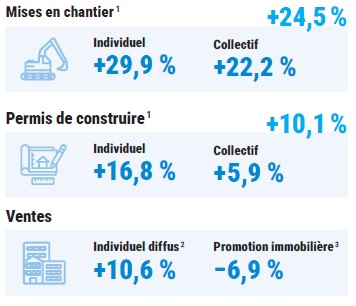 La progression relevée sur les mises en chantier de logements se diffuse maintenant sur une large partie du territoire.