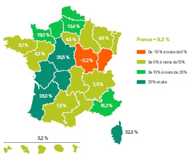 La progression nationale relevée depuis début 2025 se diffuse sur tout le territoire, hormis Bourgogne-Franche-Comté en léger repli.