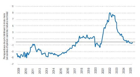 Par ailleurs, le taux de marge opérationnelle des entreprises de construction abandonne 0,3 point de pourcentage entre les deuxièmes trimestres 2024 et 2025, situation qui risque de perdurer au regard de l’érosion des perspectives des prix bâtiment à trois mois déclarées par les chefs d’entreprises de plus de dix salariés fin août.