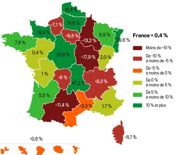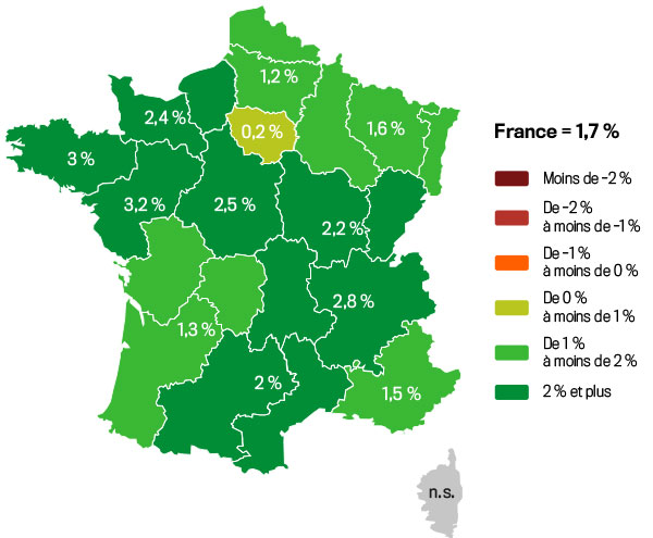 Bretagne, en Auvergne-Rhône-Alpes et dans le Centre-Val de Loire, alors que les Hauts-de-France ferment la marche, à seulement +1,2 %.