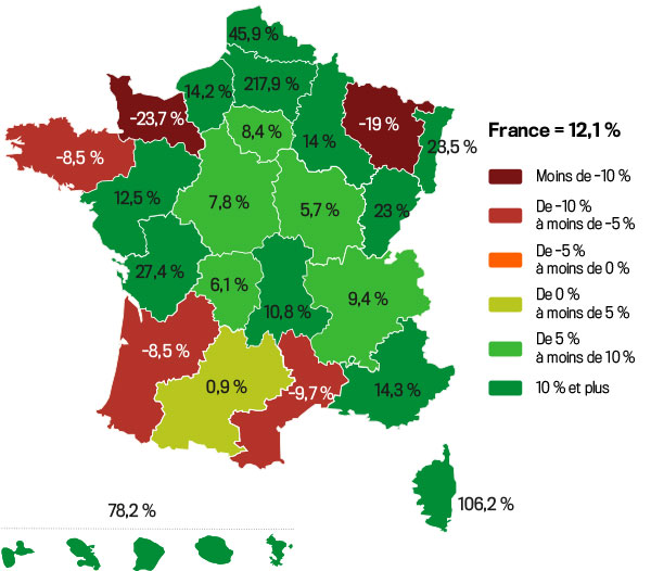 Hormis l’Île-de-France en quasi-stabilisation, toutes les régions enregistrent une hausse