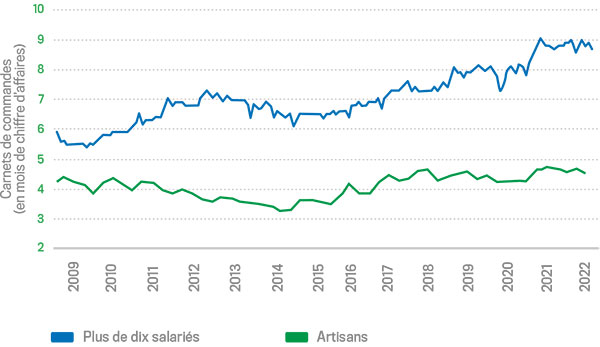 à fin août 2022, et même 8,7 mois pour les seules entreprises de plus de dix salariés. La FFB