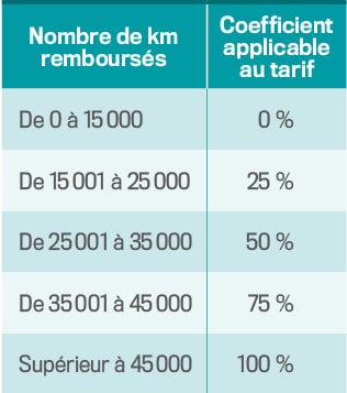 Le montant de la TVS dû par la société est obtenu après l’application d’un coefficient pondérateur en fonction du nombre de kilomètres donnant lieu au remboursement d’indemnités kilométriques.