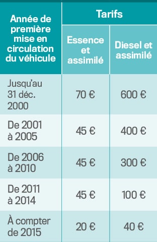 Ce tarif est à prendre en compte en fonction du mode de carburation du véhicule.