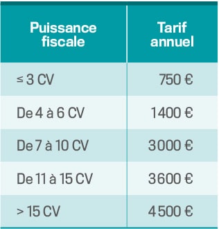 Pour les autres véhicules, le tarif est fixé en fonction de la puissance fiscale avec l’application d’un barème annuel.