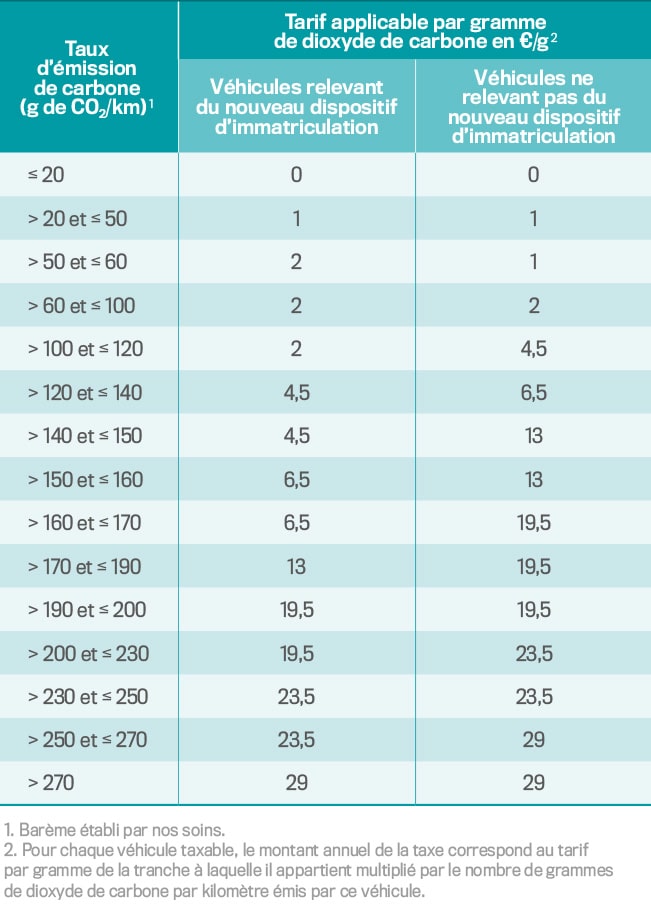 La taxe est déterminée en fonction du taux d’émission de CO2 :