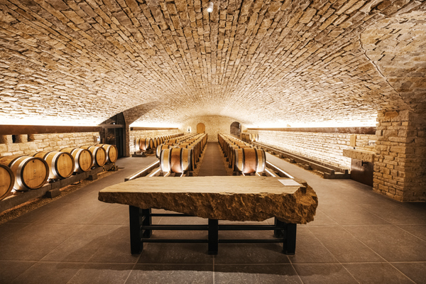C’est alors que les équipes ont relevé le deuxième défi technique du chantier : la mise en œuvre de la voûte en pierres de Bourgogne maçonnées de la cave. Longue de 35 m et large de 10 m, cette voûte très aplatie en « anse de panier » a été réalisée en technique traditionnelle.