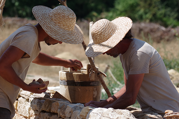 Au-delà de la prouesse technique, consistant à travailler sans autre énergie qu’humaine et avec des outils d’époque, ce chantier se caractérise également par une communauté de passionnés animés par le feu du patrimoine. Et à chantier exceptionnel, organisation inédite. À la maîtrise d’ouvrage, on trouve l’association La Fabrique de Guyenne, présidée par Valéry Ossent.