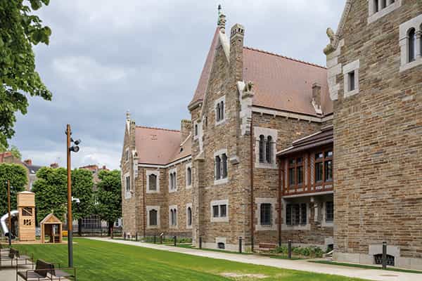 Cela nous a permis de mettre en place divers procédés pour renforcer les structures, notamment par l’utilisation de coffrages et de contre-poteaux, afin d’améliorer à la fois leur stabilité intrinsèque et leur résistance au feu », précise Arnaud Lecot. Enfin, le palais Dobrée a fait l’objet d’une reprise en sous-œuvre visant à descendre les fondations d’un niveau dans le but de créer une cage d’ascenseur.
