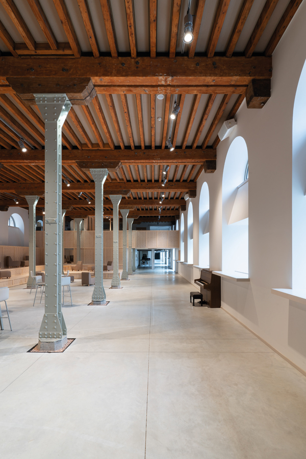 « L’enjeu était de conserver le caractère ancien du bâtiment (plafonds hauts, poutres en métal et structures bois datant de cent cinquante ans). L’architecte a choisi une laine de roche qui a été teintée pour se fondre avec le bois. La principale difficulté a résidé dans la pose qui, compte tenu de la longueur des structures bois, a nécessité beaucoup de soin pour avoir un rendu parfaitement harmonisé », détaille Pierre-Alain Mendler.