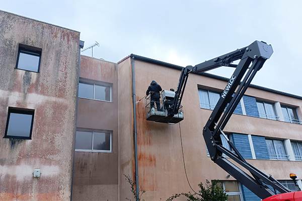 L’entretien des façades est une opération qui est la plupart du temps négligée, et néanmoins indispensable. En effet, au fil du temps, les micro-organismes tels que les mousses, algues et lichens se fixent sur la façade et sécrètent des acides organiques qui attaquent chimiquement le support. « Cela génère tout d’abord des désordres uniquement esthétiques, mais si on ne fait rien, ce phénomène peut provoquer des dégradations au niveau de l’enduit, puis de la maçonnerie et du bâti, explique Jérôme Jimenez, président de Sol Façade, spécialiste de l’enveloppe extérieure des bâtiments (ITE, enduits, bardages, parements et ravalements), implanté à Noé près de Toulouse (Haute-Garonne).