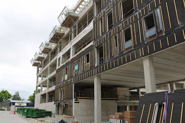 Et ce d’autant plus qu’il est fabriqué à proximité et étiqueté 100 % français, comme c’est le cas ici. De plus, le système constructif déployé par Le Bâtiment Associé, avec des éléments qui arrivent sur site prêts à être posés, est vertueux : les chantiers sont plus sûrs, plus propres et les conditions de travail nettement améliorées, avec notamment moins de nuisances sonores. Le chantier a d’ailleurs obtenu le label « chantier propre ».