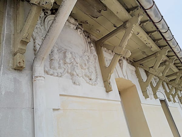 « La difficulté de cette étape a résidé dans le travail de finition assez technique. Il a notamment fallu caler le planning avec la météo, pour éviter les coups de mistral, avec des embruns très forts, et le risque que des minéraux s’incrustent sur le support entre les couches », indique Nicolas Sériès. Dans le même temps, l’Atelier Renaissance a procédé à des sondages pour jauger la résistance des éléments d’ornement en béton et plâtre sur les façades et la fontaine en rocaille.