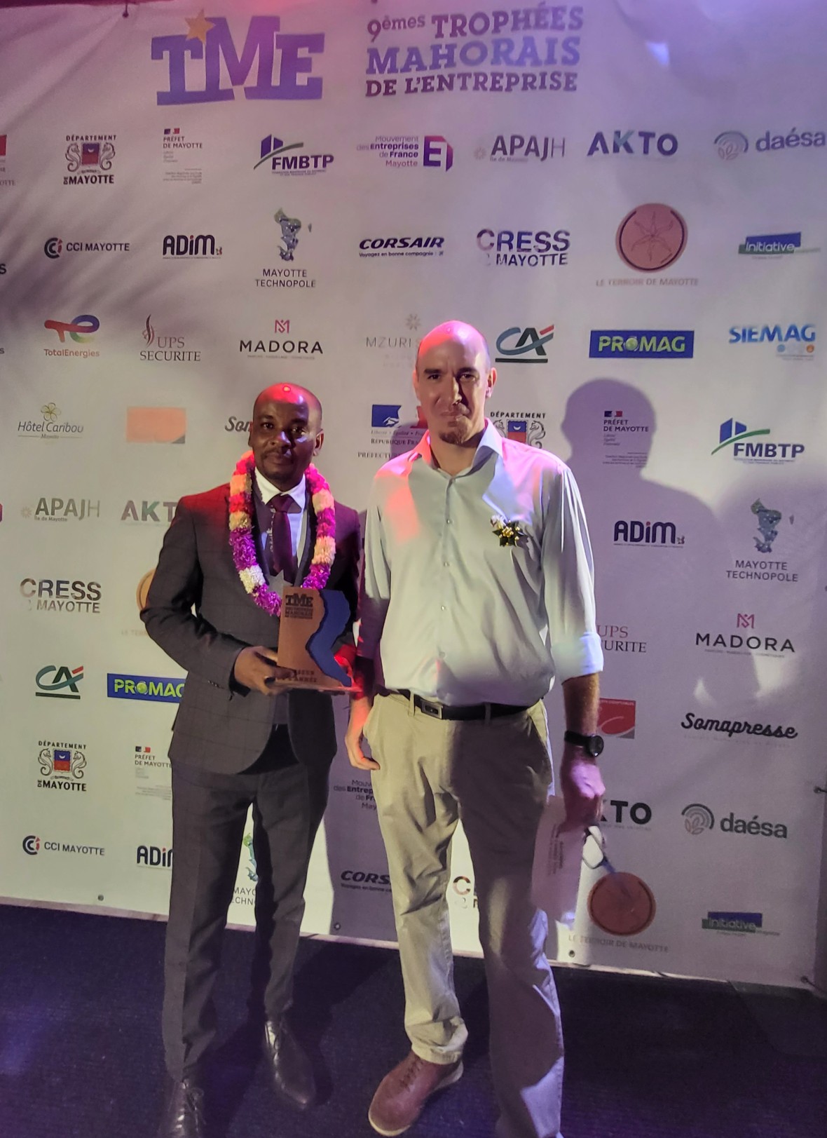 Comme l'an passé, la Fédération Mahoraise du Bâtiment et des Travaux Publics a répondu présent en sponsorisant la catégorie Bâtisseur de l'année. Julian CHAMPIAT, Président FMBTP a remis le Trophée à la mairie de Mamoudzou, et son maire Ambdilwahedou Soumaïla, pour le gymnase Jean-François Hory à Mamoudzou.