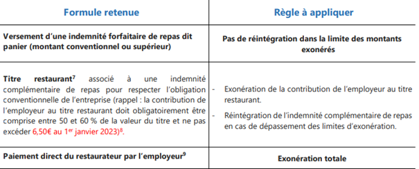 Ainsi, les entreprises versant des indemnités de repas à leurs salariés vont pouvoir être exonérés à hauteur de la limite d’exonération URSSAF fixée à 9.90€ pour 2023 :