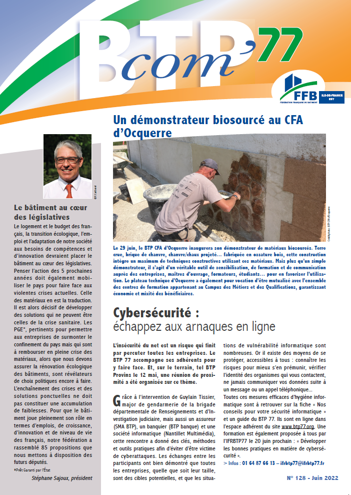 Vous retrouverez également à l'intérieur du BTP Com' la traditionnelle dizaine de fiches d'information sur les dernières actualités juridiques, sociales, l'innovation, l'emploi, la formation, le technique et l'environnement, réservées aux adhérents :