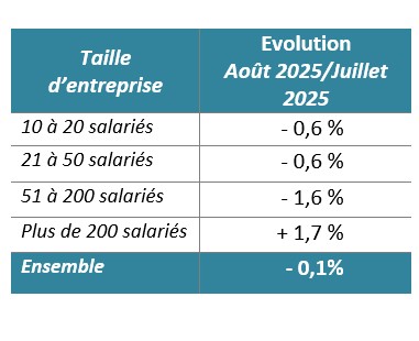 Seuls les carnets de commandes des entreprises de plus de 200 salariés ressortent en hausse. En parallèle, ceux des entreprises de 10 à 200 salariés affichent une baisse. Celle-ci est particulièrement marquée pour les entreprises de 51 à 200 salariés.
