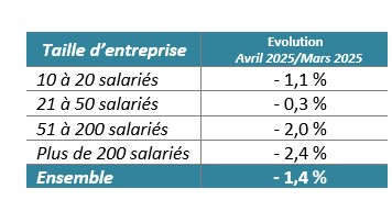 Cette diminution des carnets de commandes concerne toutes les tailles d’entreprise. Elle est plus marquée pour les entreprises de 51 salariés et plus. En revanche, elle reste très contenue pour les entreprises de 21 à 50 salariés.