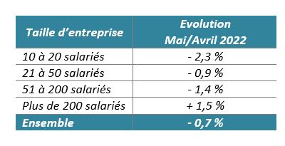 Seuls les carnets de commandes des entreprises de plus de 200 salariés augmentent. En revanche, ceux des entreprises de 10 à 200 salariés affichent une baisse. Cette baisse est plus prononcée pour les carnets de commandes des entreprises de 10 à 20 salariés.