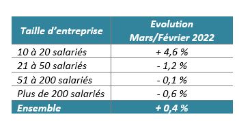 Les carnets de commandes des entreprises de 10 à 20 salariés augmentent fortement. Ceux des entreprises de 51 à 200 salariés sont quasi stables. En revanche, ceux des entreprises de plus de 200 salariés diminuent faiblement. La baisse est plus prononcée pour les carnets de commandes des entreprises de 21 à 50 salariés.