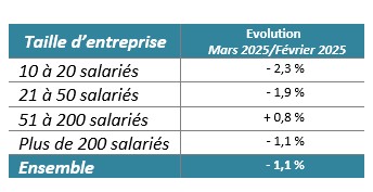 Hormis pour les entreprises de 51 à 200 salariés, les carnets de commandes ressortent en baisse quelle que soit la taille des entreprises. La chute ressort particulièrement marquée pour les entreprises de 10 à 50 salariés.