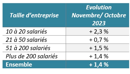 Les carnets de commandes ressortent en hausse quelle que soit la taille d’entreprises. Ceux des entreprises de 10 à 20 salariés affichent une hausse nettement plus soutenue que celle constatée pour les entreprises de plus de 20 salariés.