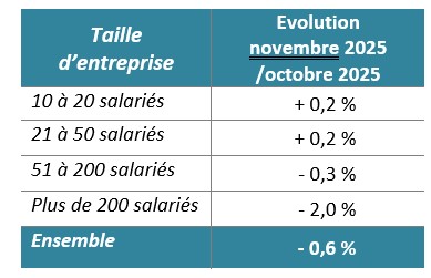 Cette baisse concerne les entreprises de 51 salariés et plus. Elle est particulièrement marquée pour les entreprises de plus de 200 salariés. En revanche, les carnets de commandes des entreprises de 10 à 50 salariés connaissent une très légère hausse.