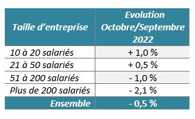 Les carnets de commandes des entreprises de 10 à 50 salariés affichent une hausse. En revanche, ceux des entreprises de 51 salariés et plus enregistrent une baisse, particulièrement marquée pour les entreprises de plus de 200 salariés.