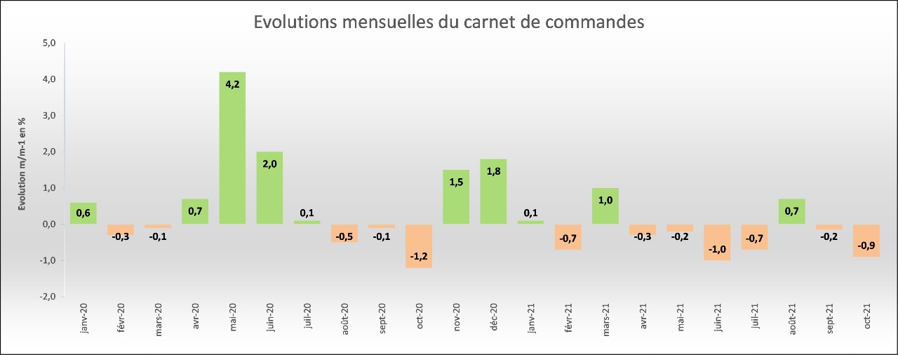 Les carnets de commandes du mois d’octobre 2021 diminuent par rapport à septembre 2021.