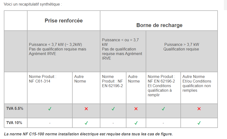 Les prestations de pose, d'installation et d'entretien d'infrastructures de recharge pour véhicule électrique sont soumises au taux de de TVA de 5,5 % sous certaines conditions dont nous attendions les précisions, notamment, sur les exigences techniques attendues ainsi que sur les critères de qualification des professionnels réalisant ces prestations. L’arrêté du 22 juin 2023 est venu définir ces éléments.