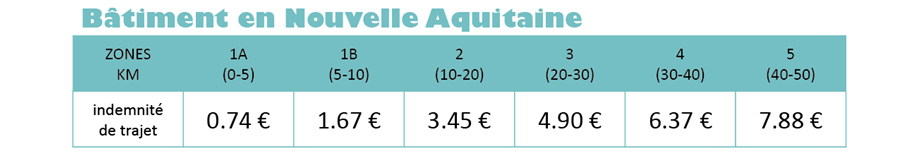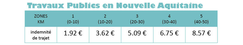 Le calcul se fait sur la base de la distance « à vol d’oiseau » séparant le siège social du lieu de chantier selon un système de zones circulaires concentriques autour du siège social (5 zones espacées