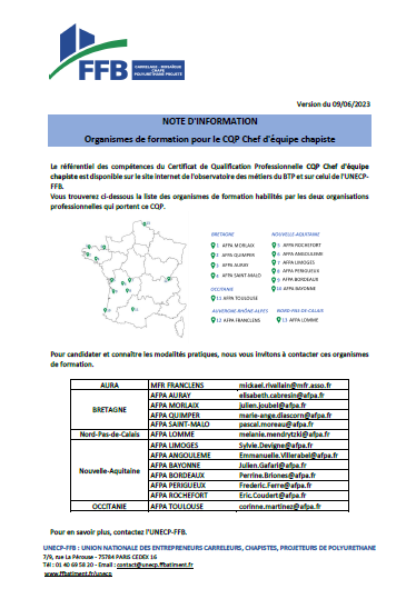L'UNECP-FFB met à votre disposition une note d'information concernant le CQP Chef d'équipe chapiste.