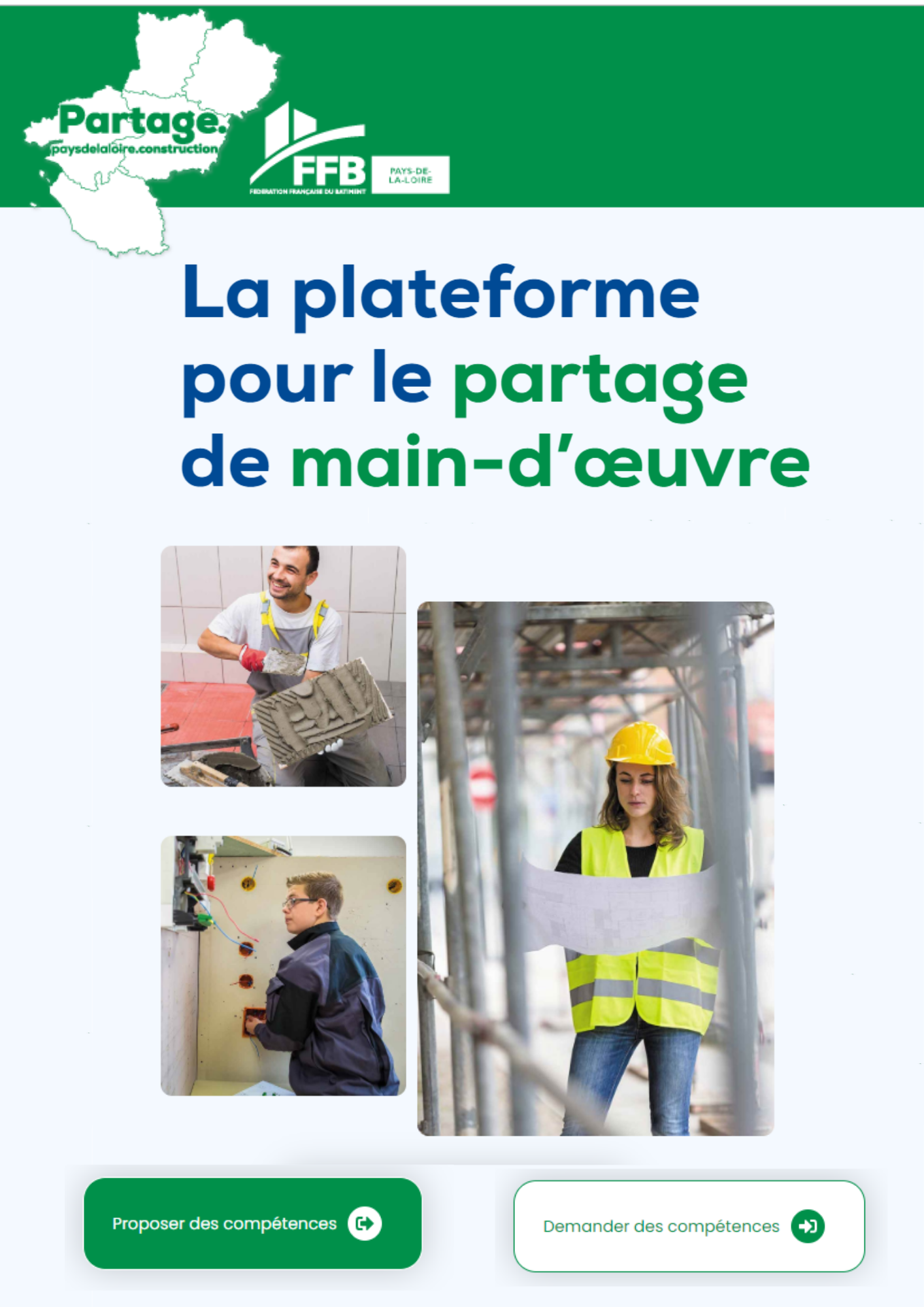 Parce que l’activité des entreprises du Bâtiment n’est pas linéaire et parce qu’il est dommage de ne pas optimiser les compétences disponibles dans les entreprises par une démarche de partage et de collaboration, les Fédérations du Bâtiment des Pays de la Loire mettent à la disposition de leurs adhérents une nouvelle plateforme de Partage de Main d’Œuvre https://partage.paysdelaloire.construction