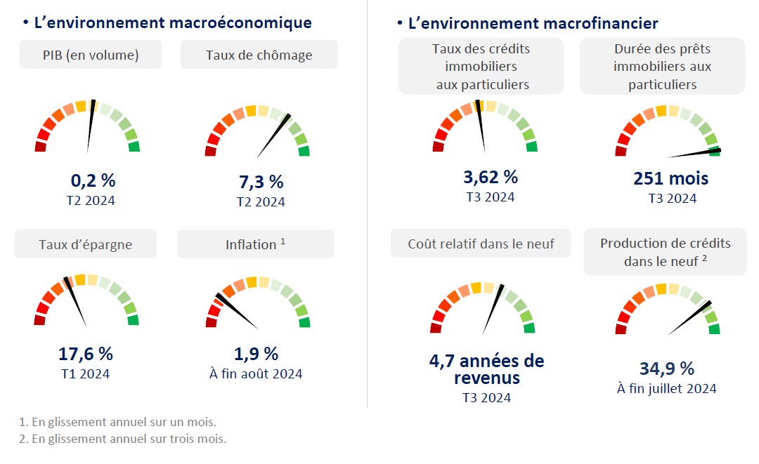 Par ailleurs, l’inflation passe enfin sous la barre des 2%, à 1,9 % en août 2024 sur un an. Dans la foulée, les taux des crédits immobiliers aux particuliers poursuivent leur baisse pour atteindre 3,62 % en moyenne sur le mois de juillet, hors frais et assurances. Le marché des crédits immobiliers connaît donc une réelle reprise, singulièrement dans le neuf avec un fort rebond de la production de 34,9 % en glissement annuel sur trois mois à fin juillet 2024, il est vrai en partant de très bas.