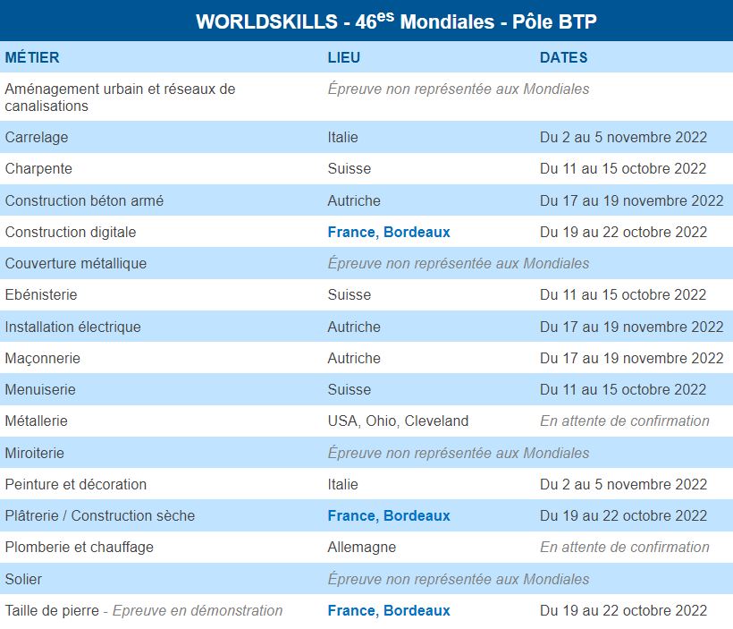 En parallèle, les inscriptions se poursuivent pour la 47e édition des WorldSkills qui se dérouleront à Lyon en 2024.
