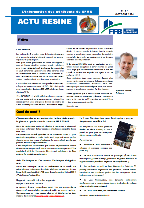 Actualités sur les sols coulés en résine : ACTURESINE N°54