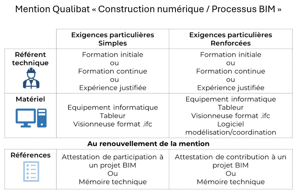 Télécharger le détail des exigences pour l’attribution et le suivi de la mention BIM