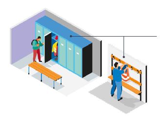 - d’armoires-vestiaires individuelles ou si impossibilité, de patères en nombre suffisant ;