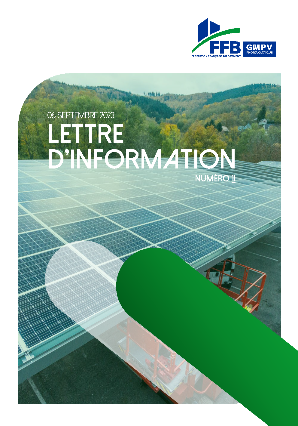 9:5506/09/2023Découvrez la dernière lettre d'information dédiée aux professionnels du photovoltaïque. Vous y trouverez aussi des ressources sur les tarifs en vigueur et sur le contrôle réglementaire des installations.