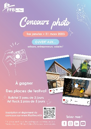 14:2220/12/2022La FBTP 22 lance un concours photo du 1er janvier au 31 mars 2023 pour valoriser la profession et mettre en lumière les métiers, les gestes techniques, l'esthétisme des ouvrages... Pour participer, lisez la suite !
