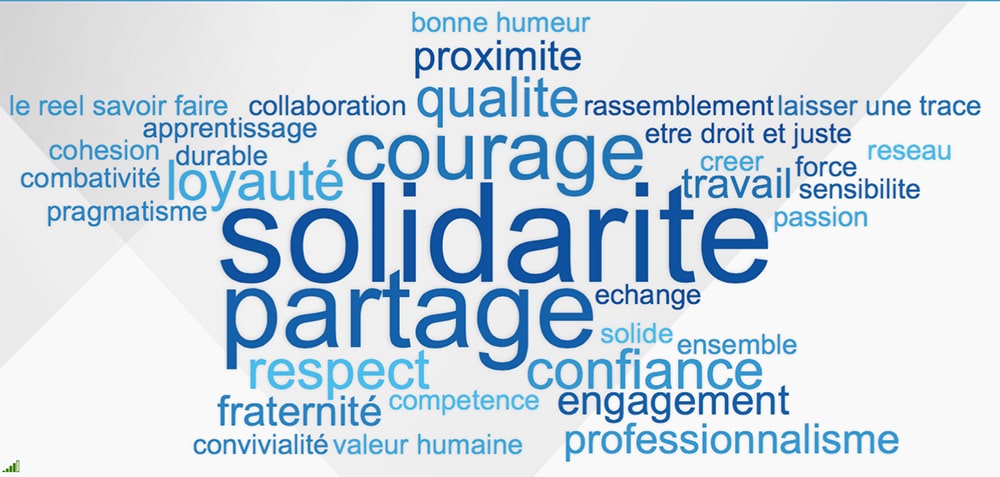 Solidarité, Partage, Courage, Qualité, Proximité, …