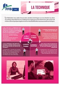 La Fédération vous aide à trouver des solutions techniques sur vos chantiers ou dans vos ateliers de production en mobilisant les ingénieurs et les techniciens des unions de métiers. Elle vous prépare également à l’arrivée du BIM et des nouveaux outils numériques.